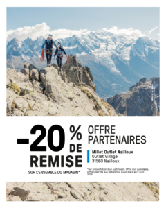 15 % sur l’ensemble des achats effectués en boutique outlet Millet de Nailloux (hors soldes ou promotions)